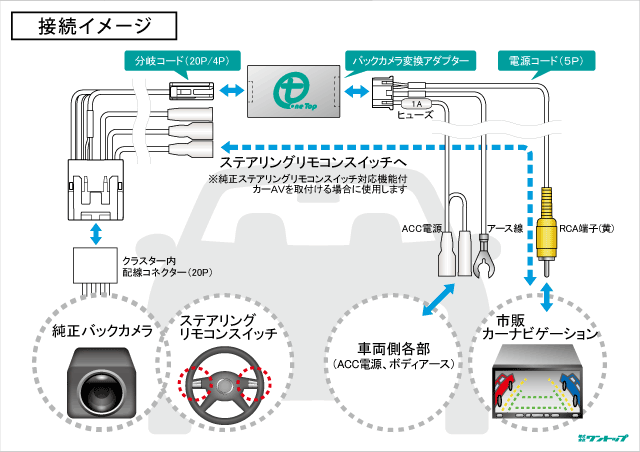 ワントップ/OneTop ダイハツ車用 バックカメラ変換アダプター (純正ナビ装着用アップグレードパッケージ付車用)TP031BA-D【キャスト/タント/ウェイクに対応】